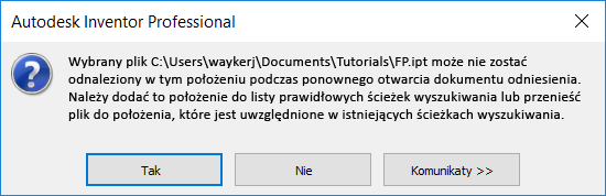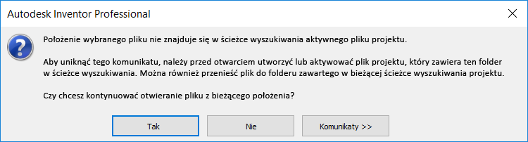 Komunikaty o błędach wyświetlane podczas próby otwarcia pliku, który nie znajduje się w ścieżce wyszukiwania aktywnego projektu, zostały zaktualizowane, aby zapewnić bardziej pomocne wyjaśnienie sposobu rozwiązania problemu: