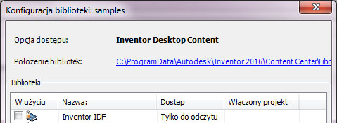 Z programem Inventor 2016 R2 jest instalowana nowa biblioteka Content Center dla komponentów IDF.