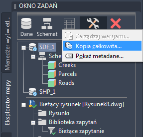1. W oknie zadań przełącz widok na Eksplorator mapy. Wybierz schemat SDF_1.