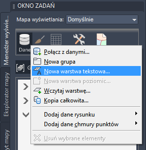 Warstwa tekstu jest tworzona w Menedżerze wyświetlania w sposób bardzo podobny do warstwy rysunku.