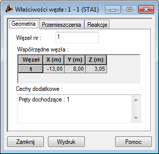 Pręty dochodzące — numery prętów dochodzących do wybranego węzła