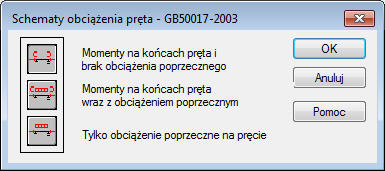 Opcja ta służy do określania dodatkowych parametrów dla analizy stabilności prętów na zginanie w chińskiej normie GB50017 - 2003. Jest dostępna po naciśnięciu ikon w oknie dialogowym Definicja pręta — dodatkowe parametry.