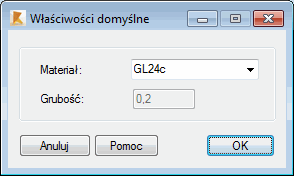 Ta opcja pozwala na określenie domyślnych parametrów stosowanych podczas definiowania przekroju.