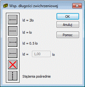 Opcja służy do określenia odpowiednich, normowych parametrów zwichrzeniowych w zależności od schematu statycznego pręta. Jest dostępna po naciśnięciu odpowiedniej ikony znajdującej się w polu Parametry zwichrzeniowe znajdującego się w oknie dialogowym Definicja pręta — parametry.