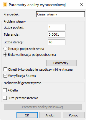 Użyj tego okna dialogowego, aby zdefiniować parametry analizy wyboczeniowej dla przypadku obciążenia.