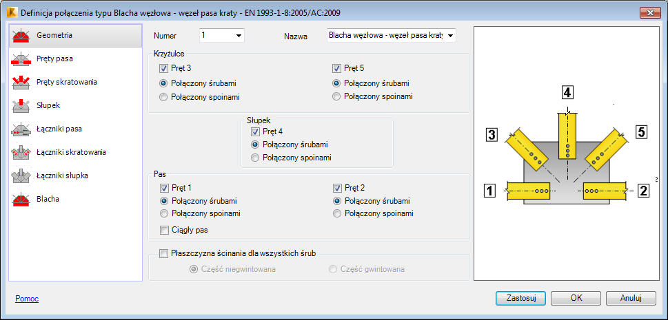 sposobu połączenia poszczególnych prętów z blachą węzłową (połączenie na śruby, połączenie spawane).