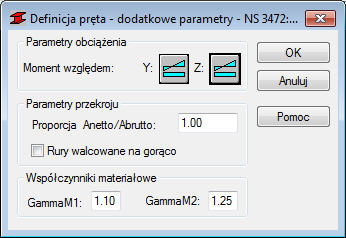Te dodatkowe parametry pręta mogą być określone w powyższym oknie dialogowym: