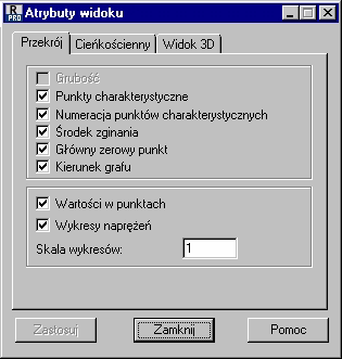 W oknie Atrybuty widoku można wybrać elementy, które prezentowane będą dla przekroju cienkościennego.