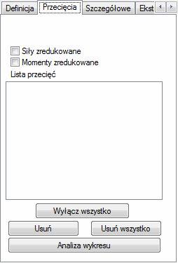 - Włączenie/wyłączenie prezentacji przecięcia dla konstrukcji: Jeżeli opcja jest włączona, to przecięcie z wybranymi wykresami wielkości prezentowane jest dla konstrukcji.