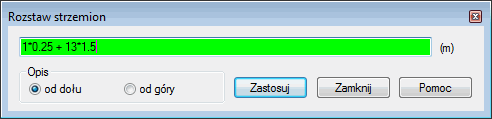 Opcja służąca do ręcznej modyfikacji rozstawu strzemion (zbrojenia poprzecznego słupa). Opcja dostępna jest po wybraniu z menu polecenia Zbrojenie / Rozstaw strzemion