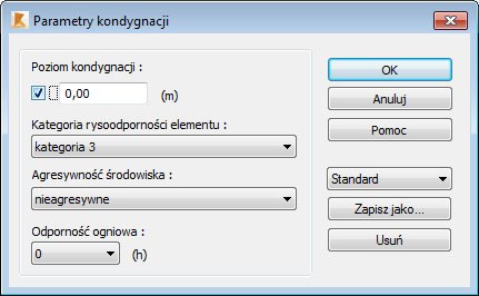 • Agresywność środowiska — do wybrania agresywności środowiska dla kondygnacji,