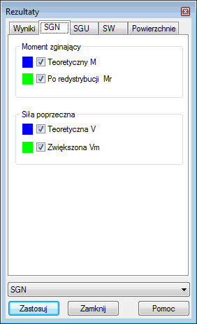 Po wybraniu opcji Wykresy i wyborze jednej z kart: Siły ULS, Siły SLS i Siły ALS na ekranie pojawia się pokazane poniżej okno.