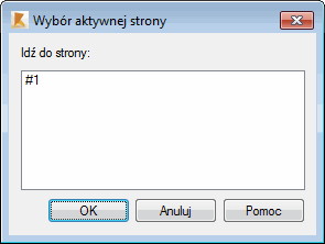 - OK — powoduje zamknięcie okna dialogowego Wybór aktywnej strony i zaakceptowanie zmiany numeru strony.