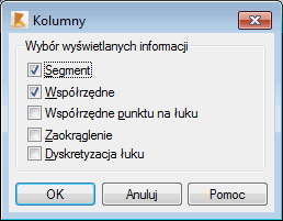 Wybranie opcji znajdującej się w powyższym oknie dialogowym powoduje prezentację odpowiedniej kolumny w tabeli opisującej parametry definiowanego konturu.