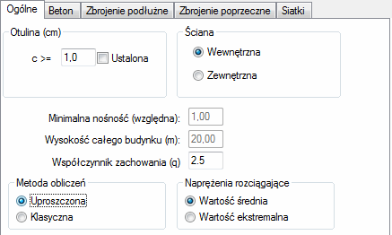 W powyższym oknie użytkownik ma możliwość ustalenia ogólnych opcji obliczeniowych, które będą wykorzystywane podczas obliczeń ściany. Należą do nich: