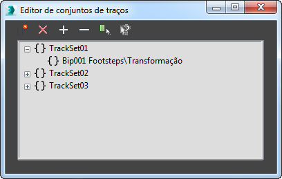 A janela da caixa de diálogo Track Sets Editor exibe todos os conjuntos de tracks atuais disponíveis. Para expandir ou recolher a lista track para um conjunto, clique no sinal de mais (+) ou de menos (-), situado junto ao nome do conjunto track.