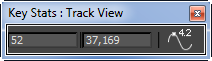 A barra de ferramentas Estatísticas de chave mostra o tempo e o valor de uma única chave realçada. Ela também fornece a opção de exibir estatísticas de chave na janela Chave do Editor de curvas. Ela é exibida por padrão na barra de ferramentas inferior nos layouts Clássicos dos modos da Vista de trilha Dope Sheet e Editor de curvas.