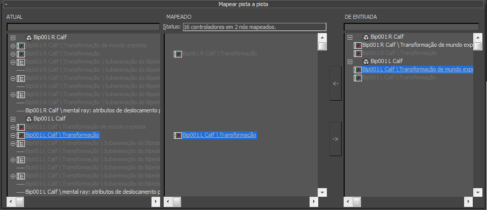 Atribui a trilha de animação realçada na lista de entrada à trilha de animação realçada na lista Atual. Depois, a atribuição aparece na lista Mapeada, oposta à entrada da lista Atual correspondente.