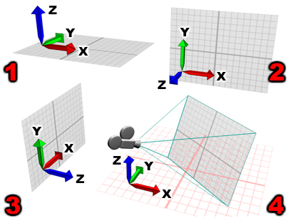 No sistema de coordenadas Ver padrão, os eixos X, Y e Z são os mesmos em todas as janelas de visualização ortográfica. Quando você move um objecto usando o sistema de coordenadas, você está o movendo relativamente ao espaço da janela de visualização.