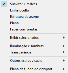 Exibe um submenu com opções para visualização de iluminação e sombras em viewports. Para obter mais informações, consulte abaixo.