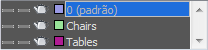 A barra de ferramentas Camadas simplifica a interação com o sistema de camadas no 3ds Max, permitindo organizar camadas facilmente em sua cena. Apesar de a maioria destas operações estar disponível a partir da caixa de diálogo Explorador de camadas, a barra de ferramentas Camadas fornece atalhos convenientes para diversas ações comuns.