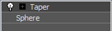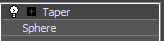 Quando você clicar para escolher uma entrada na pilha de modificadores, seu plano de fundo é realçado para mostrar que a entrada é atual e que os parâmetros do objeto ou do modificador estão disponíveis para ajuste, em implementações que aparecem abaixo da exibição da pilha.