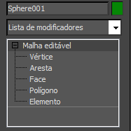 Os objetos com uma hierarquia de subobjeto, como polígonos editáveis, também mostram uma hierarquia recolhível na pilha de modificadores.