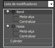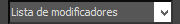 A Lista de modificadores permite escolher um modificador a ser adicionado à pilha. Quando você escolhe um Modificador de objeto-espaço nessa lista, ele aparece acima do objeto ou do modificador realçado no momento na pilha. Quando você escolhe um Modificador do espaço universal nessa lista, ele aparece na parte superior da pilha.