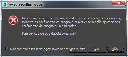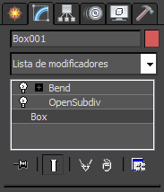 A pilha de modificadores ("pilha", para encurtar) contém o histórico acumulado de um objeto, incluindo seus parâmetros de criação e os modificadores aplicados a ela. Se um modificador ou objeto tiver subobjetos, tais como Vértice ou Aresta com objetos de polígono editáveis, você poderá acessá-los diretamente da pilha.