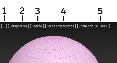 Dependendo do driver de exibição selecionado, cada viewport contém uma série de até cinco menus no canto superior esquerdo que controlam a exibição da viewport.