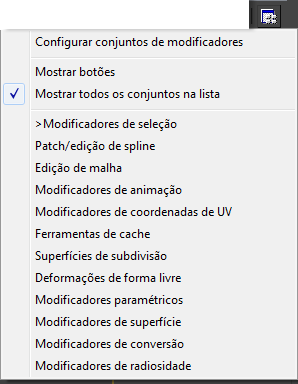A parte inferior do menu Conjunto de modificadores lista os nomes dos conjuntos de modificadores salvos. Selecione um desses conjuntos para torná-lo o atual, que é exibida como botões quando a opção Mostrar botões está ativada.