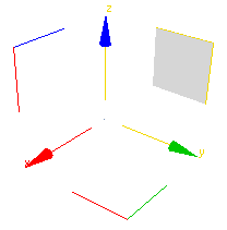Um gizmo Transformar aparece quando um ou mais objetos são selecionados e um dos botões de transformação —Selecionar e mover, Selecionar e rodar ou Selecionar e escala—está ativo na barra de ferramentas principal. Cada tipo de transformação usa um gizmo diferente. Por padrão, é atribuída uma de três cores a cada eixo: X é vermelho, Y é verde e Z é azul. Os cantos interiores do gizmo Mover contêm alças de plano a cujas arestas são atribuídas as duas cores dos eixos relacionados; por exemplo, as arestas da alça de plano XZ são vermelhas e azuis. E o gizmo Escala tem uma área central para um dimensionamento uniforme, que é circundada por três controladores de plano.