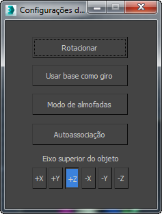 A caixa de diálogo Configurações de Posicionamento fornece controles para modificar o movimento do objeto ao usar Selecionar e Colocar. Para abrir a caixa de diálogo, clique com o botão direito no botão Selecionar e colocar na barra de ferramentas principal.