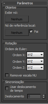 Os valores de rotação com relação ao objeto pau ou objeto Nó de Referência Local.