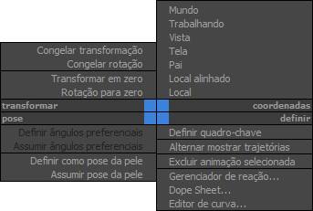 Este menu em quadrantes inclui os comandos usados na animação de maneira conveniente.