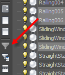 - Fecha a caixa de diálogo e ativa o filtro, exibindo somente objetos da lista do Scene Explorer que satisfaçam à combinação de condições de filtro.