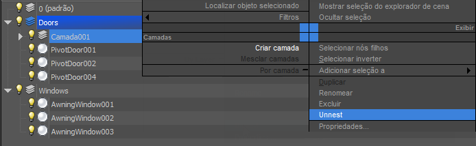 O Layer Explorer é a versão do Scene Explorer que é aberta quando você utiliza qualquer dos seguintes comandos. Nesse modo, é possível visualizar objetos, camadas e hierarquias de camadas, mas não grupos ou hierarquias de objetos. Use o Layer Explorer para criar e aninhar camadas e mover objetos entre camadas.