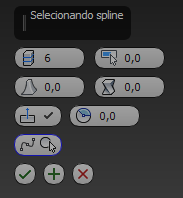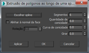 Clique neste botão, e a seguir selecione uma spline ao longo do qual efetuar a extrusão na viewport. O nome do objeto de spline e, a seguir, aparece no botão.