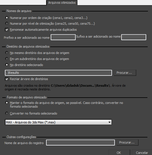 Estas opções dizem ao ProOptimizer onde salvar os arquivos que gera.