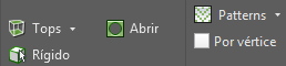 O painel Selecionar inclui as ferramentas Topos, Abrir e Padrões para a seleção de subobjetos em todos os níveis, mais a ferramenta Rígido para selecionar arestas de grupos de suavização e ferramentas de seleção adicionais para polígonos.