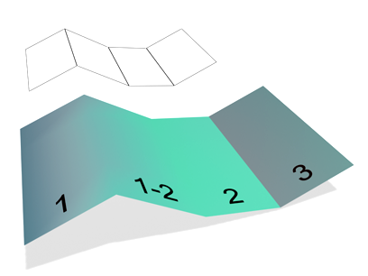 A face legendada como "1-2" compartilha grupos de suavização com faces adjacentes e, portanto, as arestas entre elas são suavizadas nas renderizações.