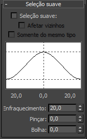 A implementação de seleção suave para subobjetos de ponto e CV contém os controles para esse recurso. A caixa de seleção Seleção suave é desativada por padrão.
