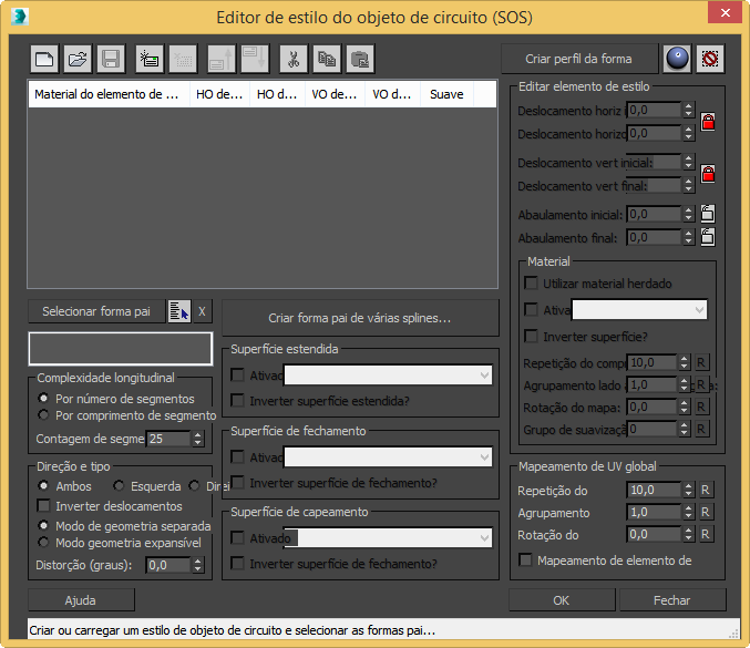 É possível salvar ou carregar estilos de objeto varridos predefinidos.