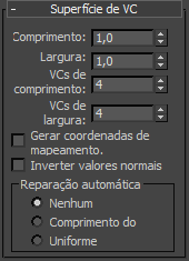 Os parâmetros que aparecem quando você cria um subobjeto de superfície de VC diferem daqueles que você vê ao modificá-lo como um subobjeto.
