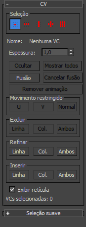 A caixa do grupo Seleção, descrita em "Interface" mais adiante neste tópico, fornece opções adicionais para selecionar subobjetos de VC.