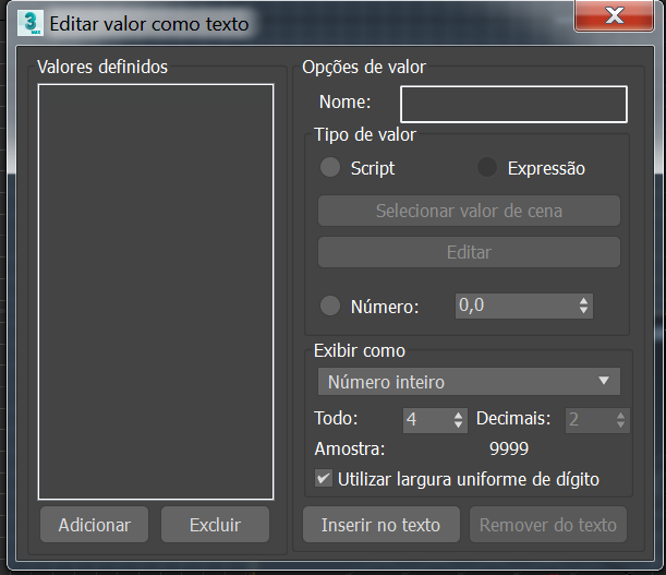- Na caixa de diálogo Editar valor como texto, clique em Adicionar.