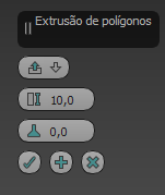 Especifica a quantidade da extrusão em unidades de cena. É possível efetuar a extrusão dos polígonos selecionados para dentro ou para fora, dependendo se o valor for positivo ou negativo.