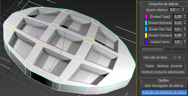 Sempre que você selecionar vértices ou arestas, pode salvá-los como um conjunto de dobras. Essa implementação fornece controles para o gerenciamento de conjuntos de dobras e ajuste de seus valores.