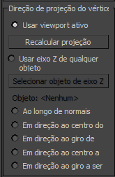 Permite usar o eixo Z local de qualquer objeto na cena como uma direção. Uma vez que um objeto é atribuído, é possível alterar a direção da projeção de vértice, girando o objeto de direção.