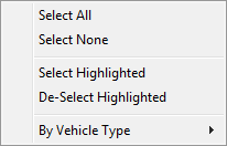 [botão sinal menos]Exibe o conteúdo do arquivo FZP. Cada entrada na lista representa um único veículo. Para a cada veículo, a lista exibe as seguintes informações: